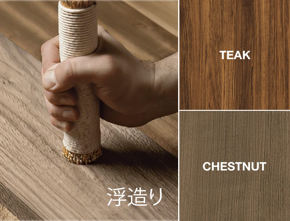 Our Teak and Chestnut finishes recreate this refined technique through advanced laminate engineering, delivering the tactile pleasure of natural wood with lasting performance.
