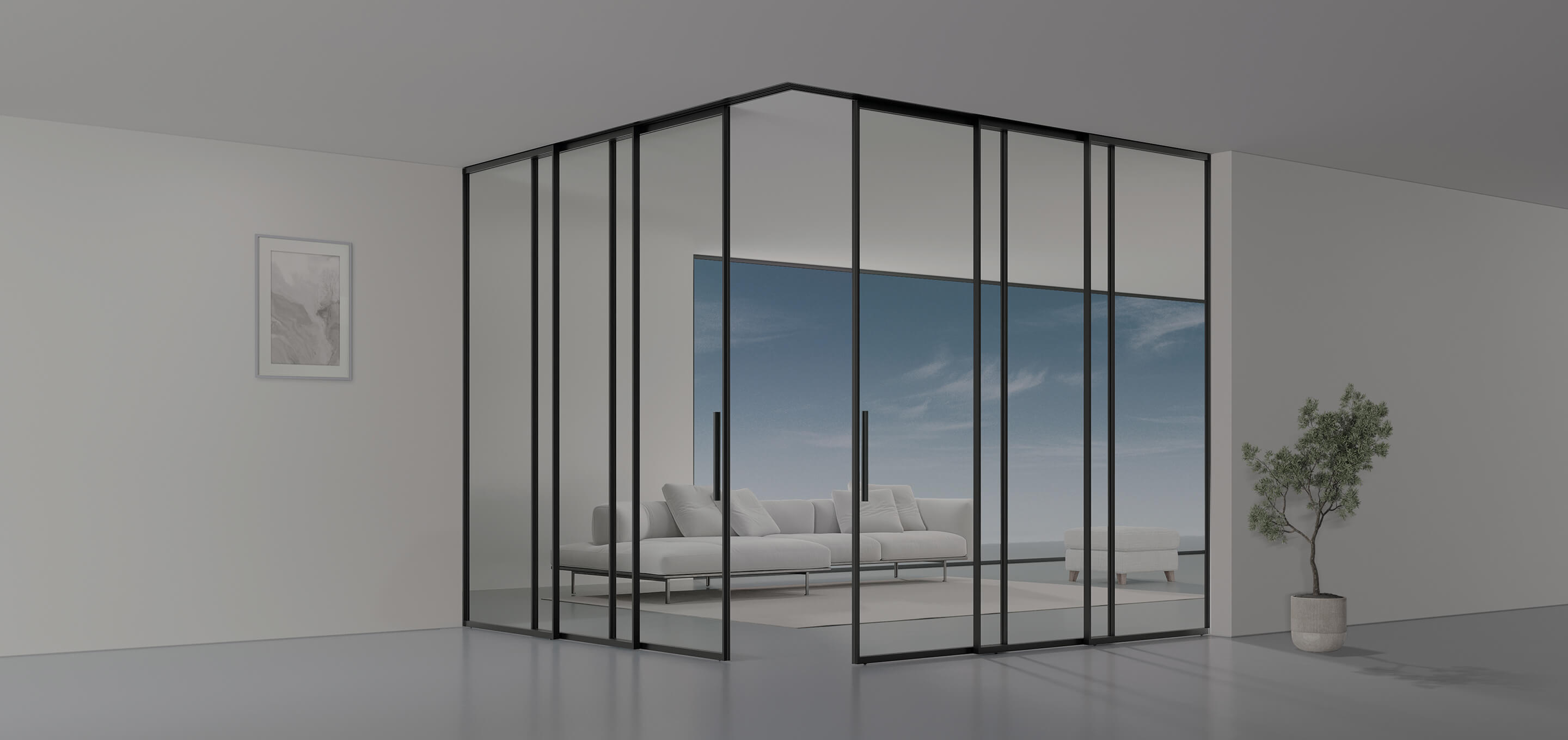 A sleek, corner-opening aluminum sliding system that smoothly dissolves traditional boundaries. Ultra-slim, effortless,